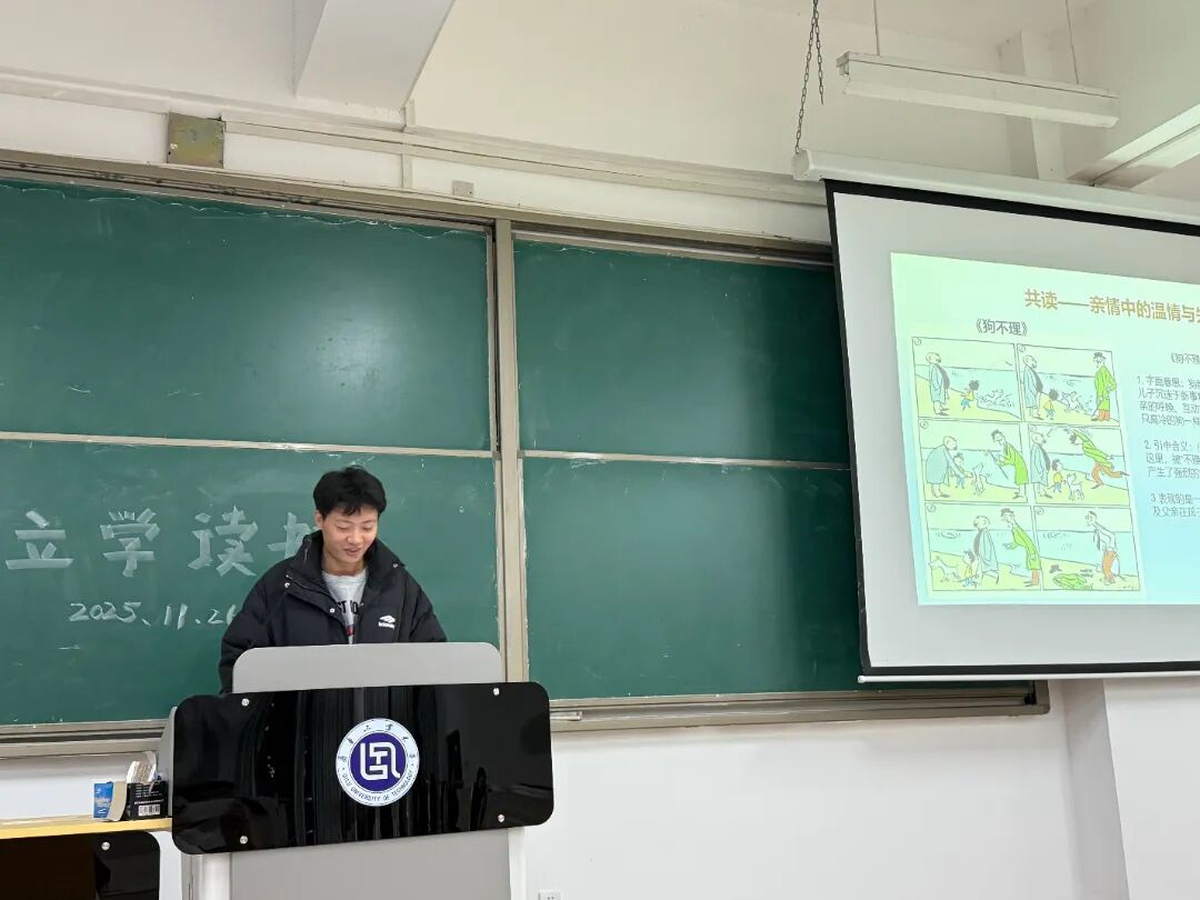 行管25级的8位同学,带着独属于自己的阅读感悟登场,让同一本书在不同灵魂里绽放出各异光彩:王麒翔从《父与子》里读代际冲突的“温情解法”;邓新杰借《风与树的歌》,把童话世界的诗意揉进哲思;辛佳乐从《百家讲坛》里挖经典的“当代价值”;魏梦婷解析《基督山伯爵》,剖开人性里的复仇与救赎;王子璇以《怦然心动》为引,聊双视角初恋里的“成长与反思”;刘洁分享《你当像鸟飞往你的山》时动情直言:“教育让我们有勇气飞往属于自己的山”;陈骏丰读《悉达多》,悟“生活本身是最好的老师”;王彦博从《红与黑》里,品个人奋斗与社会现实的复杂缠绕。